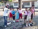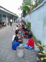 Tidak ada kesan capai tergambar di wajah-wajah mereka. Celoteh-celoteh riang menyertai aktivitas menghias tong sampah. Suasana bermain yang tercipta membuat anak-anak lupa pada kenyataan bahwa mereka sedang bergumul dengan tong sampah. Benda yang dua hari sebelumnya mereka singkiri karena dianggap menjijikkan, kotor dan berbau.